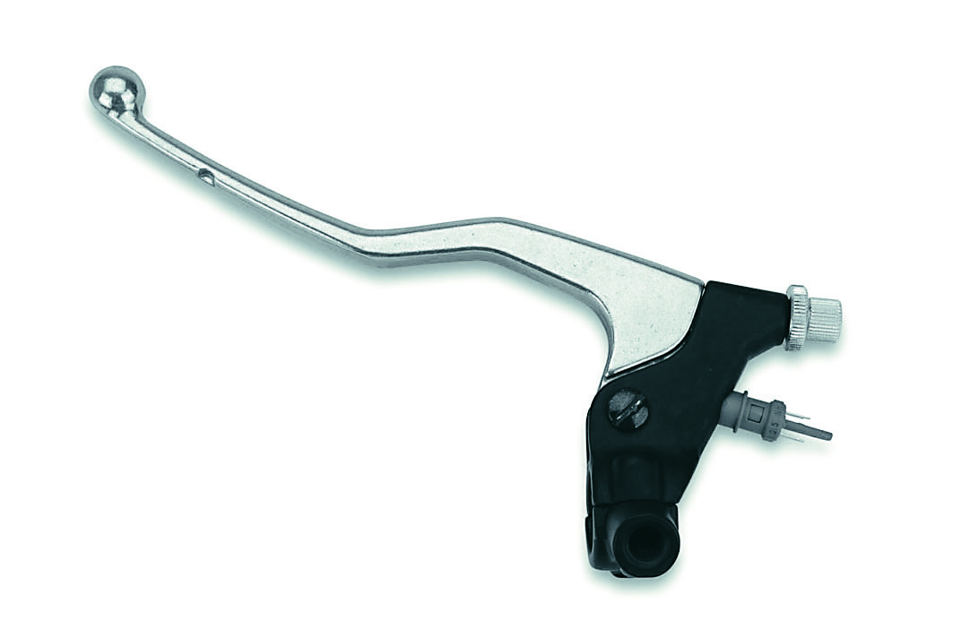 Lever assembly with aluminium lever, safe start switch, M10 x 1,25 rearview mirror thread and dismountable clamp